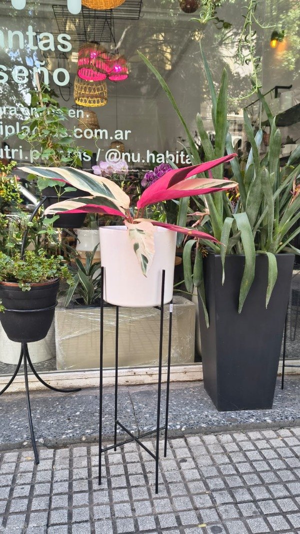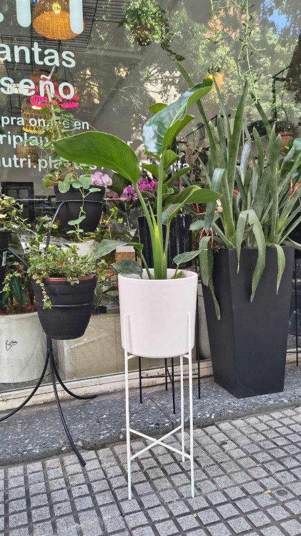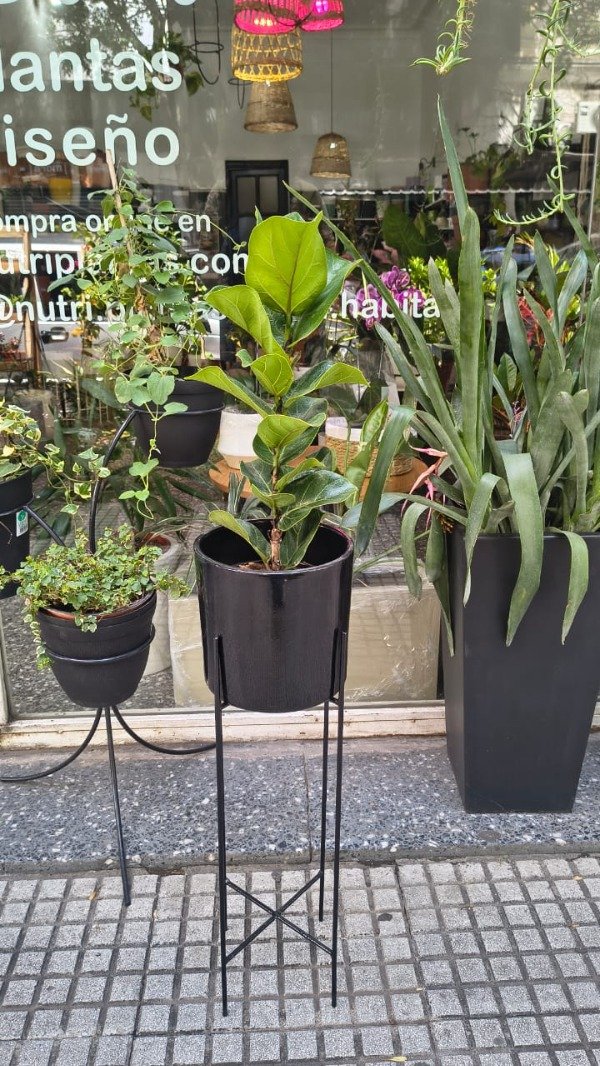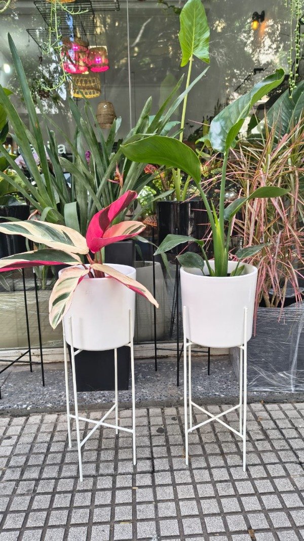 Incluye pie de hierro + Maceta de barro de 19x19cm impermeablilizada y pintada + Planta a elección (sujetas a disponibilidad y stock)