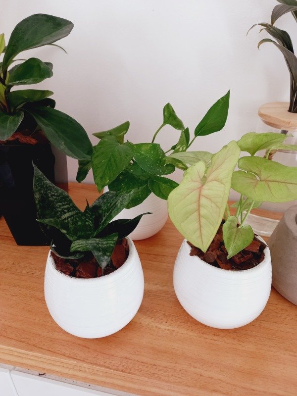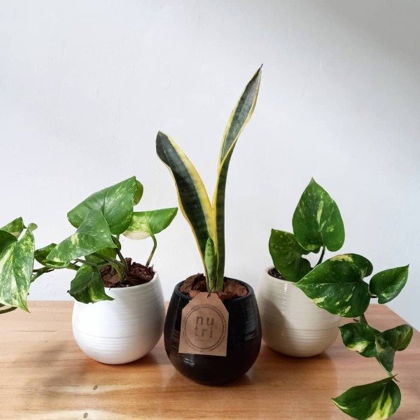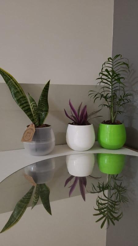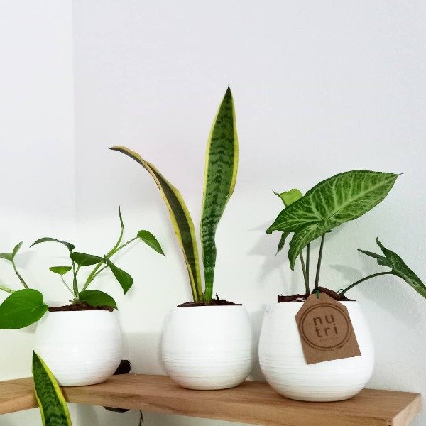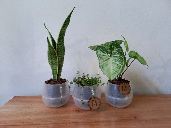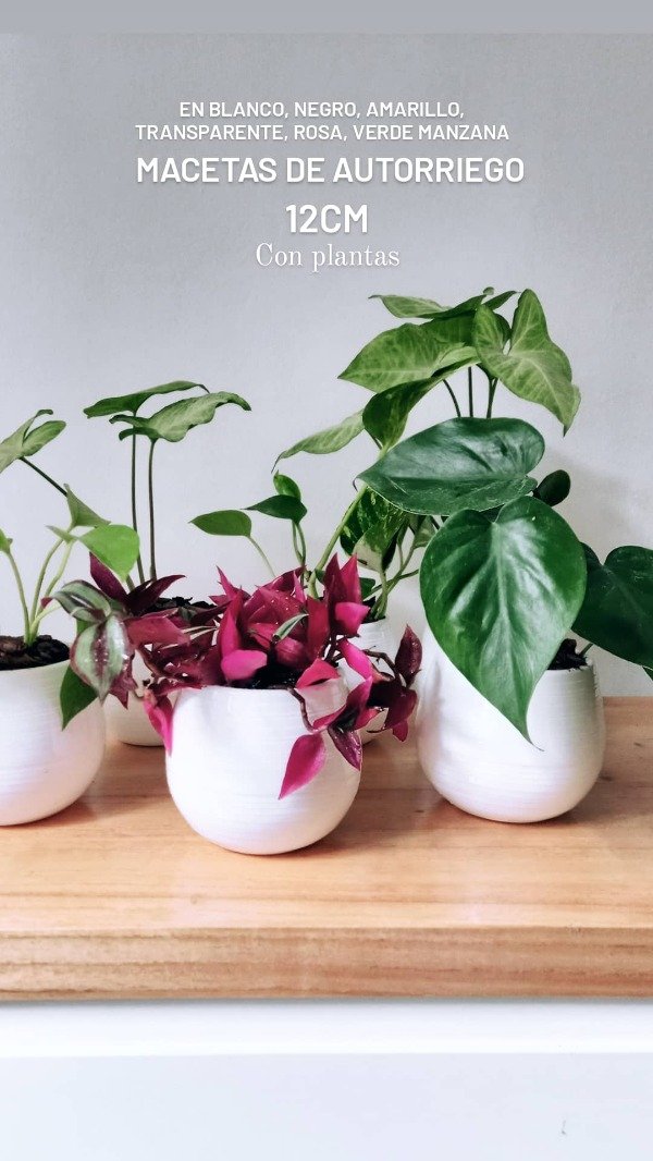 Combo de 3 macetas de autorriego de 12x12cm con plantas variadas.