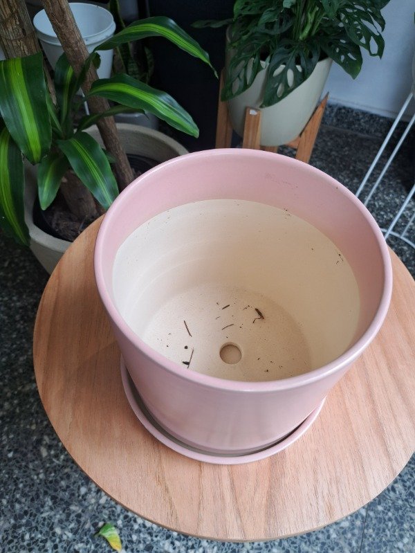 Maceta de cerámica con agujero de drenaje y plato incluido.
