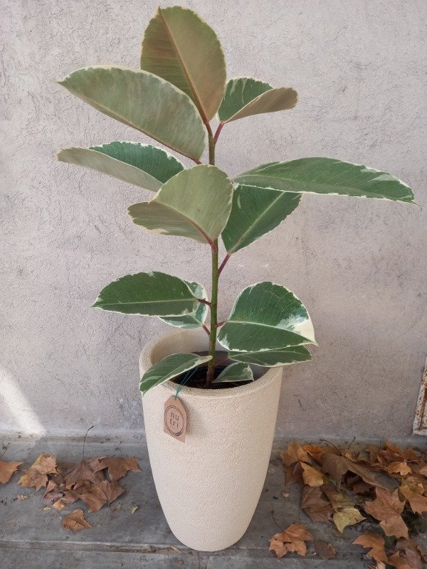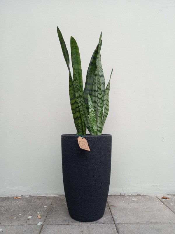 Medidas 25cm de diámetro x 41cm de altura. Maceta de plástico rotomoldeado con textura simil cemento. Liviana, resistente a la intemperie, sol, lluvia.