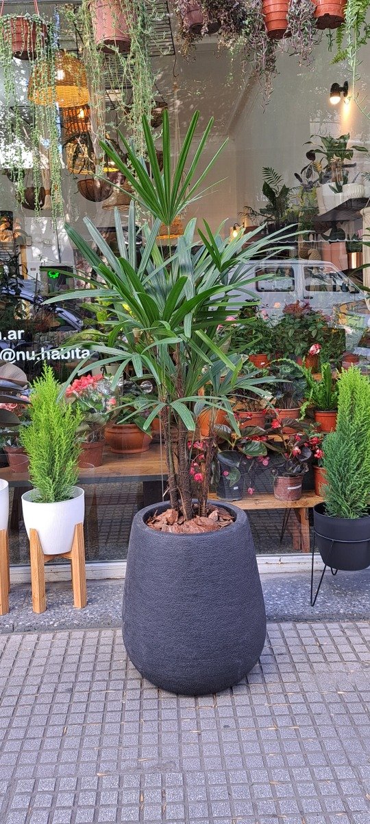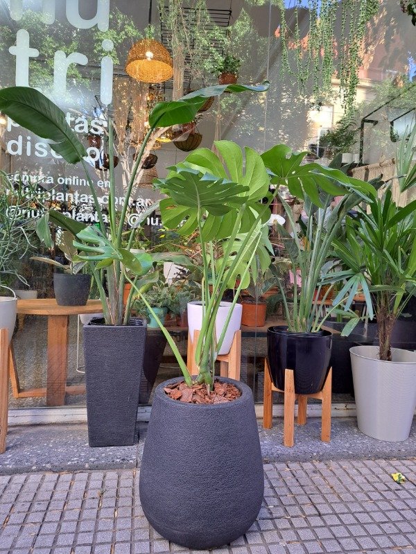 Maceta de plástico rotomoldeado simil Cemento. Liviana, resistente a la intemperie, sol y lluvia.